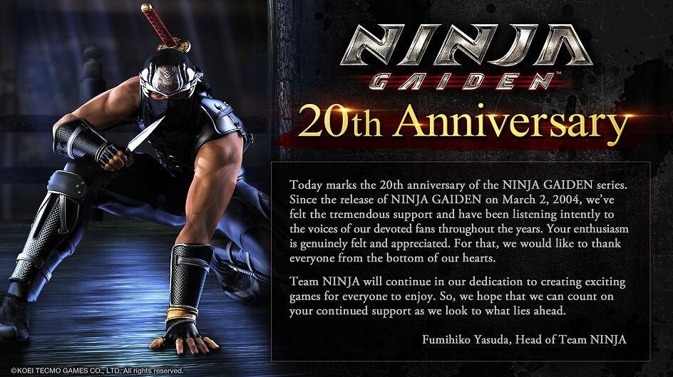 3D《忍龙》迎来20周年,Team NINJA品牌长安田发表纪念寄语