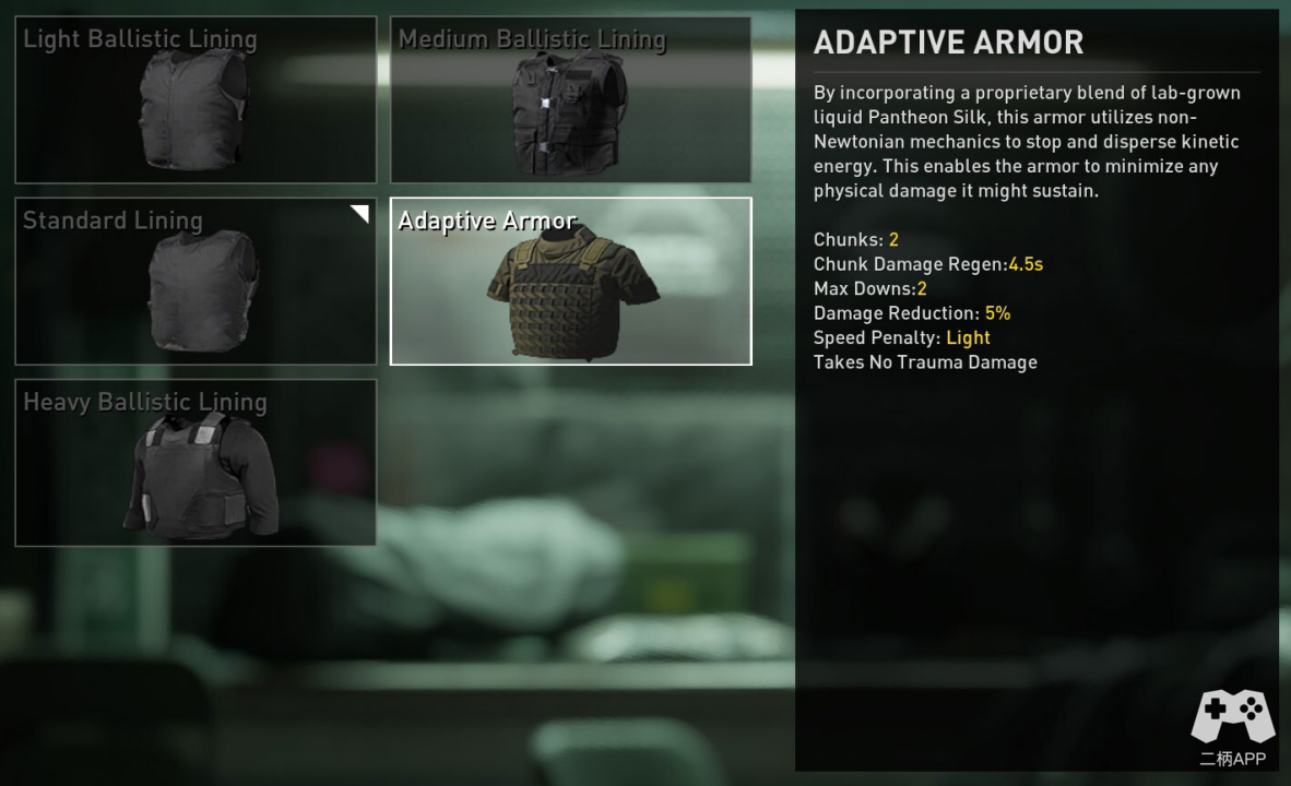 开发团队还计划针对玩家讨论较多的护甲问题进行调整,加入全新的护甲类型——适应性护甲。此护甲类型更加接近玩家们所提到的二代性能护甲,它将拥有两格护甲块,而且不会受到任何永久伤害,在护甲块破损前能够提供一定的减伤效果,不过玩家仍然需要使用护甲箱来恢复完全破损的护甲块。