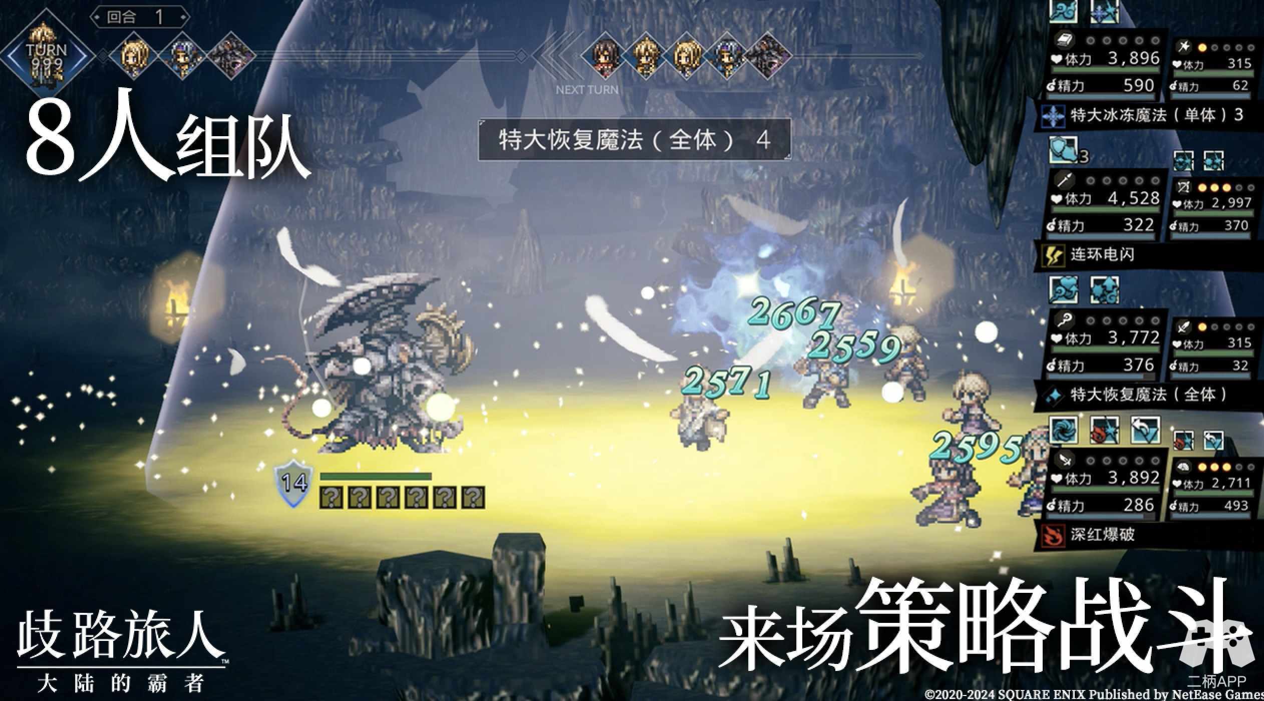 通过像素风与3D相融合的独特“HD-2D”美术风格所呈现的世界观、游戏音乐、8位主人公的故事、极具战略性的战斗系统等深受众多玩家及各大媒体的好评。
