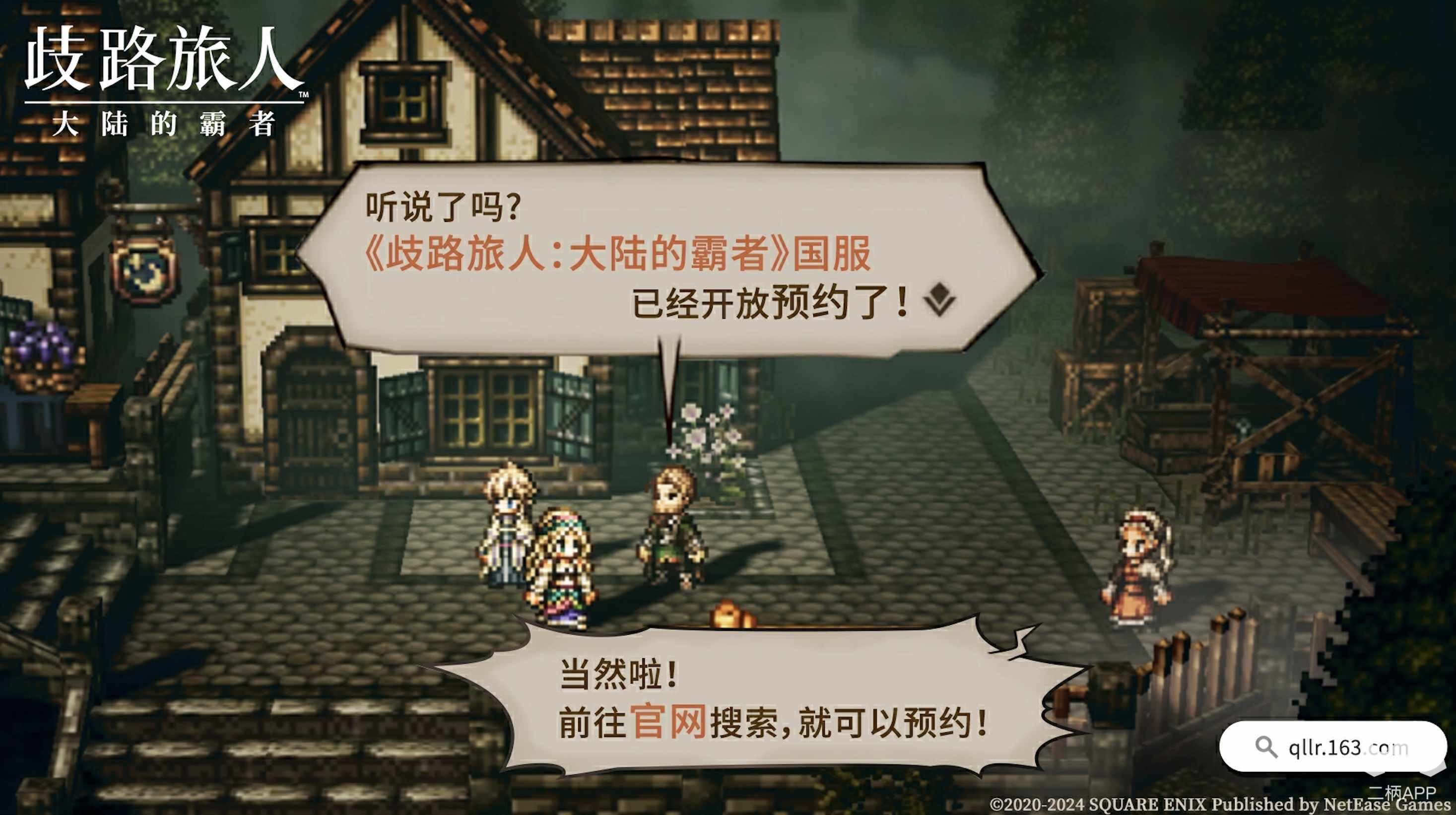 由SQUARE ENIX正版授权的王道日式RPG像素游戏「歧路旅人」(通称:八方旅人)的移动端单人游戏专用RPG《歧路旅人:大陆的霸者》(国服版)首次在国内曝光,由网易游戏代理,目前现已全平台开启预约!玩家可前往官网预约,获取丰富国服预约福利。 《歧路旅人:大陆的霸者》是一款可以在安卓和iOS设备上可基本免费体验(部分内容需付费)的回合制日式RPG手游。