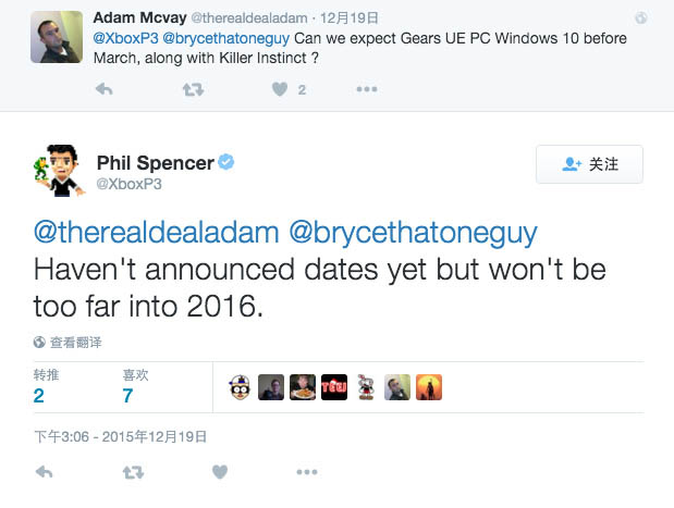 《战争机器:终极版》作为《战争机器1》的高清重制,自宣布的时候就并非由Xbox One独占——微软曾经说过本作将会推出PC版。但直到目前为止PC版还是没有后续消息。有玩家按耐不住通过社交网络向微软Xbox项目负责人Phil Spencer询问项目进度,对此Phil Spencer的回答是:等吧……目前还未确定具体的发售时间,但肯定是在2016年,玩家不会等待太久的。