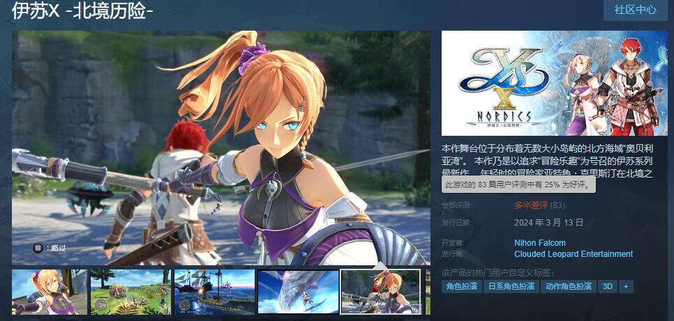 《伊苏10:北境历险》Steam上获玩家“多半差评”