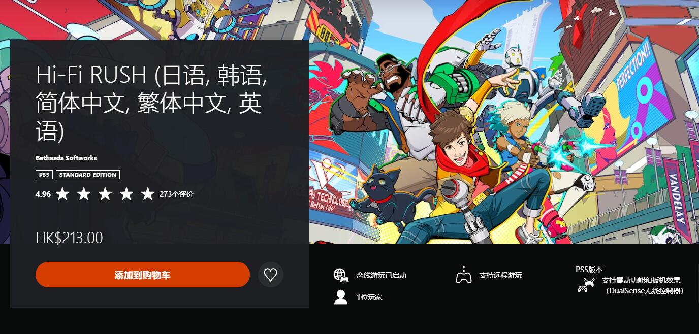 【《完美音浪》PS5版现已发售,MC均分91,PSN商店中获玩家五星好评】由Tango Gameworks工作室所打造的节奏动作游戏《完美音浪》已于今日登录PS5平台。本作在MC上PS5版均分为91,目前由8家媒体给出。其中GamingTrend表示游戏移植的非常完美,除了拥有着良好的运行情况外,DualSense功能也是一个很好的补充。截止目前,《完美音浪》在PSN商店中的已有273个评价,全球玩家评分为4.96,其中有97%的人打出五星好评。游戏标准版收件213HKD、豪华版284HKD,支持中文。