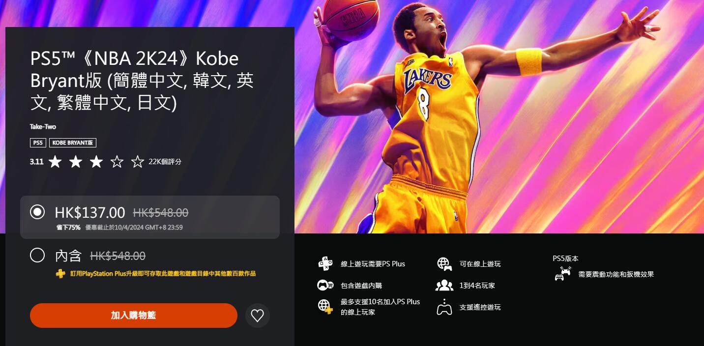 【PSN HK商店开启“春季特惠”,多款作品促销中】PSN HK商店今日开启了“春季特惠”,活动截止日期为4月24日,期间多款游戏优惠促销中。作品包括(以下均为折后价):《人中之龙7外传:无名之龙》208.6HKD(新史低)、《NBA 2K24》PS5版137HKD/PS4版93.6HKD(新史低)、《对马之魂:导演剪辑版》PS5版238.56HKD、《霍格沃茨之遗》PS5版274HKD、《心灵杀手2》304.8HKD、《星球大战绝地:幸存者》247.05HKD、《荒野大镖客2》154.44HKD、《双人成行》79.75HKD、《匹诺曹的谎言》246HKD、《赛博朋克2077终极版》426HKD等。