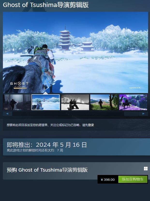 《对马之魂:导演剪辑版》PC版Steam国区价格下调至398元
