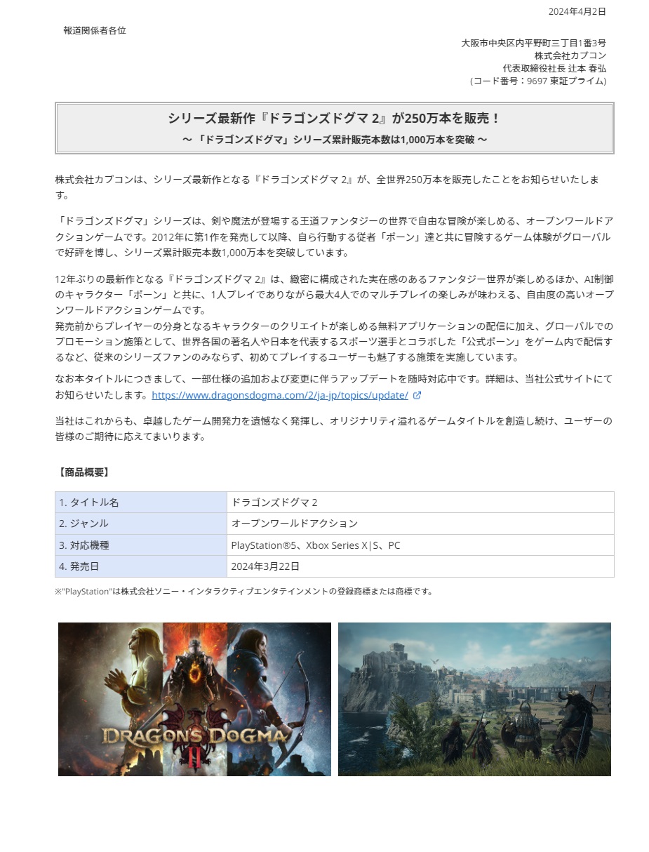 《龙之信条2》全球销量达250万,系列累计销量突破千万
