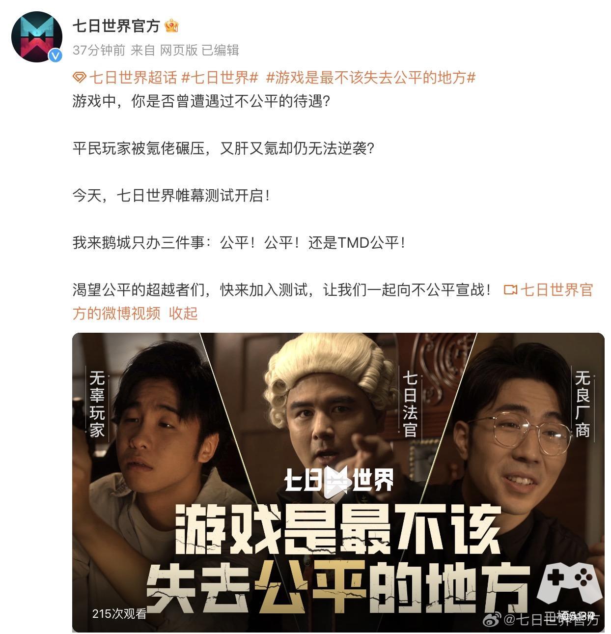 今日,《七日世界》正式开启了移动端的【帷幕测试】,在【帷幕测试】期间只要参加测试就可以获得高级限定时装【红龙套装】的奖励,以回馈玩家的热情支持。同时官方也在今日发布了首个广告短片。片中官方大胆的向同类型游戏发出了“不卖数值,公平游戏”的宣言,旨在打破玩家在游戏中感受到的束缚,创造全新的游戏体验,让微氪玩家和休闲玩家也能享受到与氪金玩家同等的游戏体验。