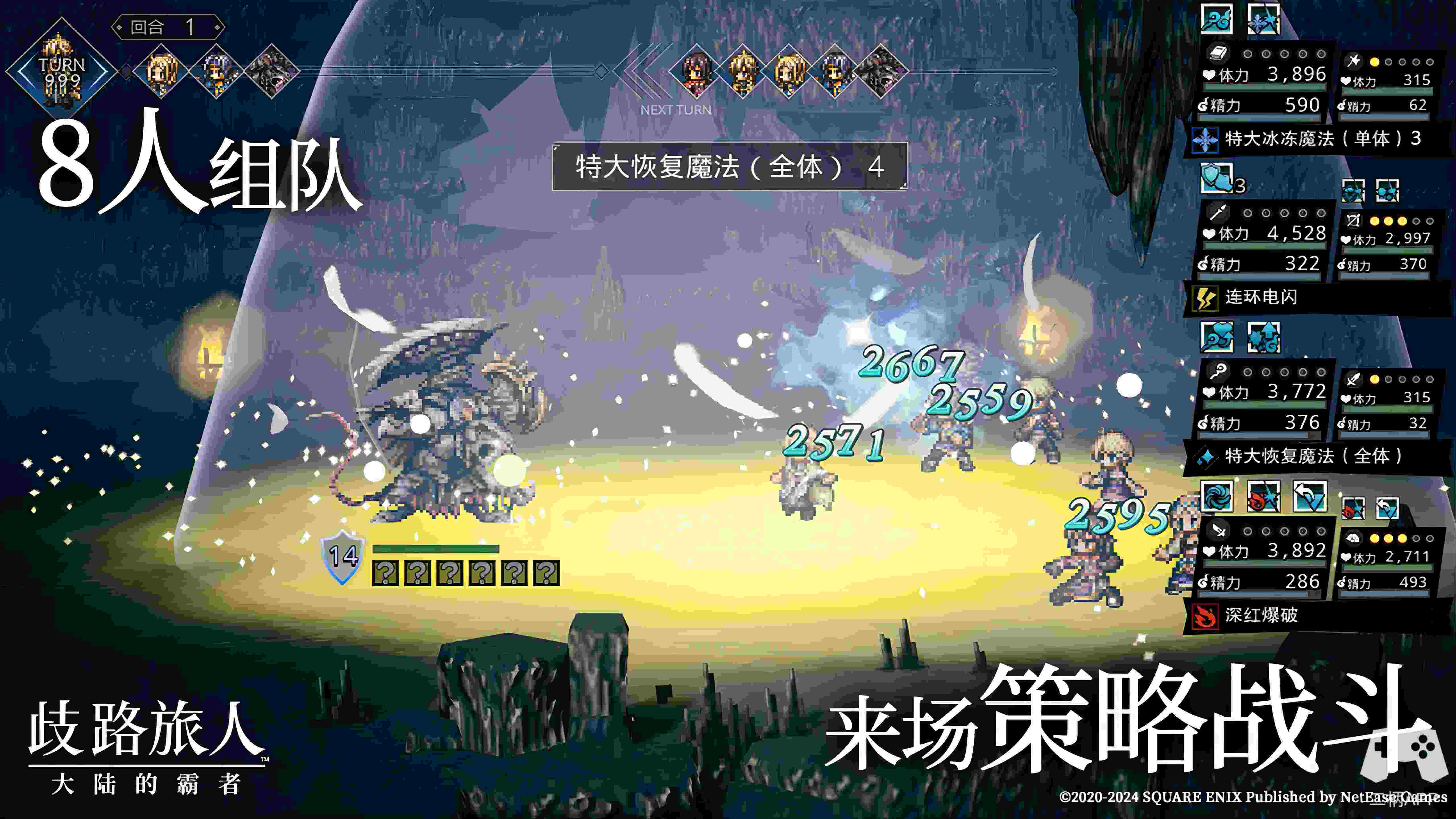《歧路旅人:大陆的霸者》在战斗玩法上也对原作达成了继承创新,在继承原作弱点和破甲、以及加成点数等核心机制的情况下,增加出战角色到八人,还推出了前后卫系统,更加的提高了本作角色的多样化和队伍配置的策略性。