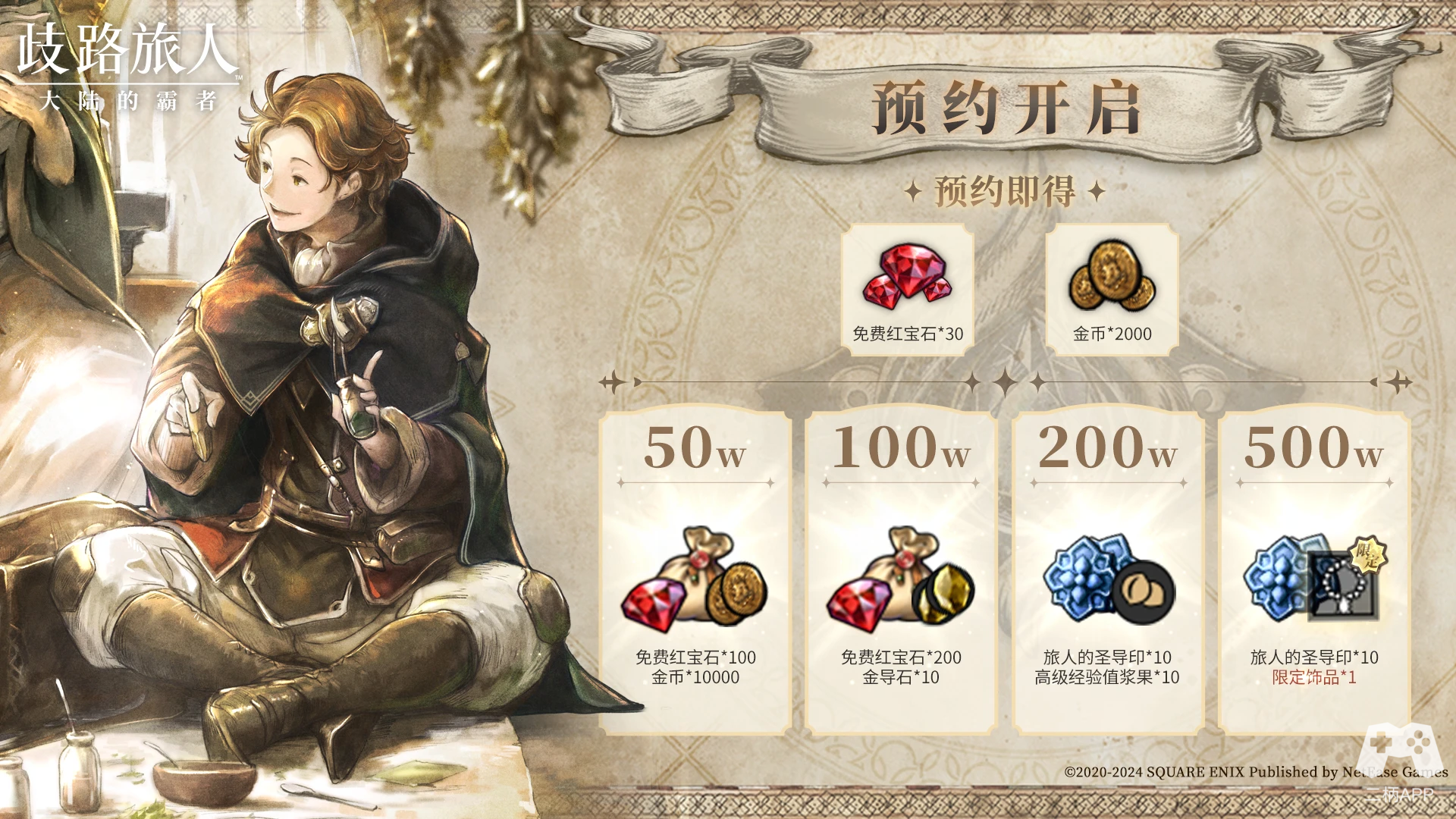 最后,感谢玩家们对《歧路旅人:大陆的霸者》的关注与支持!「霸者测试」测试即将在4月18日开启,欢迎各位玩家前往官网预约,预约人数累计达到一定成就后,在游戏正式上线时将会向全体玩家发放丰厚游戏奖励!iOS端的玩家们可以去App Store搜索【歧路旅人:大陆的霸者】前往预订,等到国服上线时就可以自动下载。