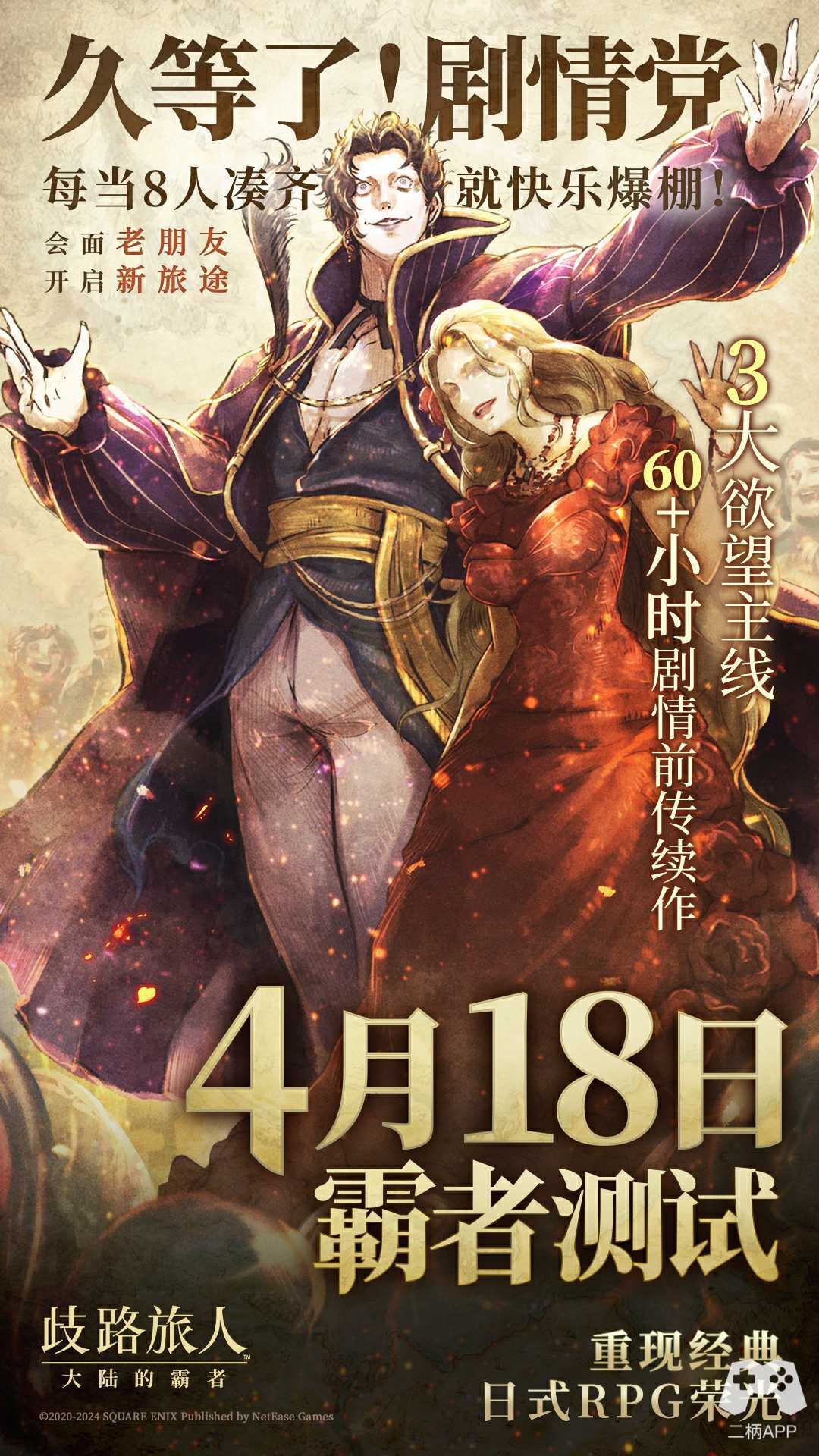 由SQUARE ENIX正版授权的王道日式RPG像素游戏「歧路旅人」(通称:八方旅人)的移动端单人游戏专用RPG《歧路旅人:大陆的霸者》(国服版)于4月18日正式开启「霸者测试」,本次测试为仅限安卓手机平台的小范围付费删档测试。