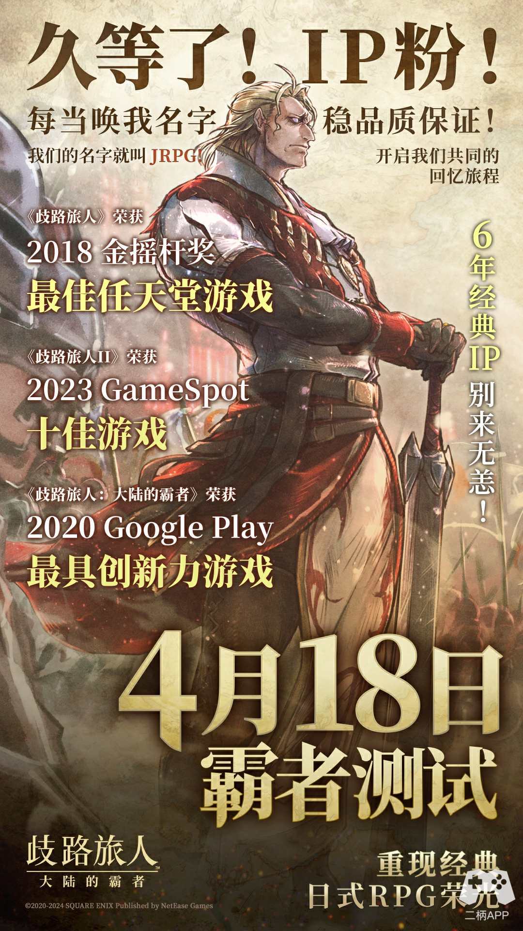自2018年初代发布起,《歧路旅人》系列就引来无数日式RPG爱好者关注,也在业界斩获无数殊荣,《歧路旅人》荣获2018年金摇杆奖“最佳任天堂游戏”,IGN评分高达9.3,《歧路旅人2》荣获2023年GameSpot十佳游戏,MC站评分也高达86,而本次《歧路旅人:大陆的霸者》更是被Google Play评为2020年最具创新游戏,在媒体与游戏平台间也收获了极高的口碑。