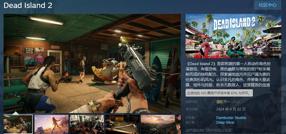 【《死亡岛2》在Steam上获玩家“褒贬不一”评价】第一人称动作角色扮演游戏《死亡岛2》PC版现已结束Epic独占于今日登录了Steam平台。截至目前,游戏收到了433条玩家评测,好评率为63%,整体为“褒贬不一”。现在最受人们所诟病的是游戏虽然登录了Steam,但是仍需要下载Epic不然无法联网。《死亡岛2》国区普通版售价228元,目前可以半折114元的首发价入手。豪华版优惠后119元、黄金版149元,截止日期为4月30日,游戏支持中文。
