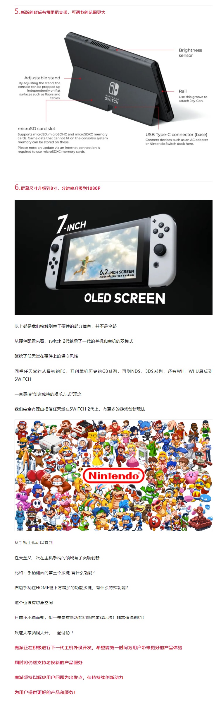 【外设厂商魔派NS2爆料:8寸1080P屏幕及更大体积的磁吸式Joycon】外设厂商魔派游戏(MOBAPAD)近日分享了由其所掌握的任天堂Switch后续机型(以下简称NS2)一手信息。