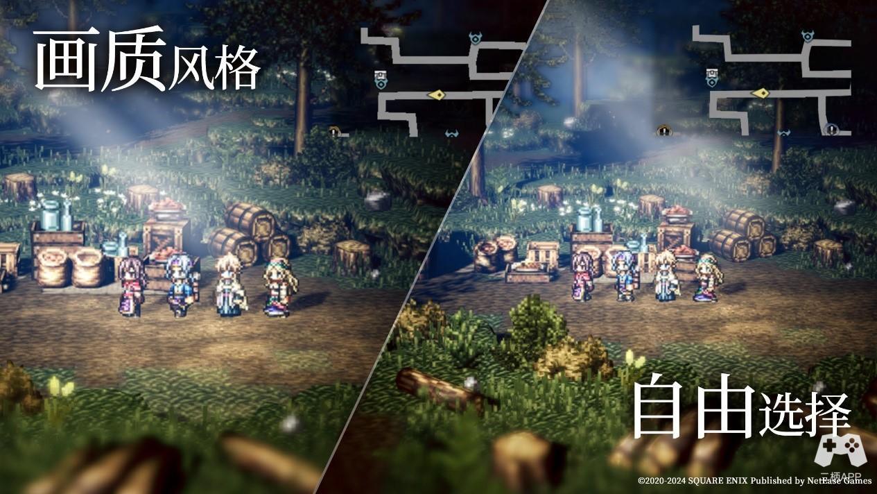 在本作中,画面、配乐和声优都迎来了全新升级,多重融合之下,让冒险之旅更加酣畅淋漓!在画面方面,游戏采用HD-2D技术,将传统像素艺术与现代3D效果相碰撞,呈现出令人惊艳的视觉效果。在前沿的虚幻4引擎的加持下,奥鲁斯特拉大陆的风景更加别具一格,复古又不失细腻,亲和且不失华丽,像素艺术在这里焕发出别样的魅力。