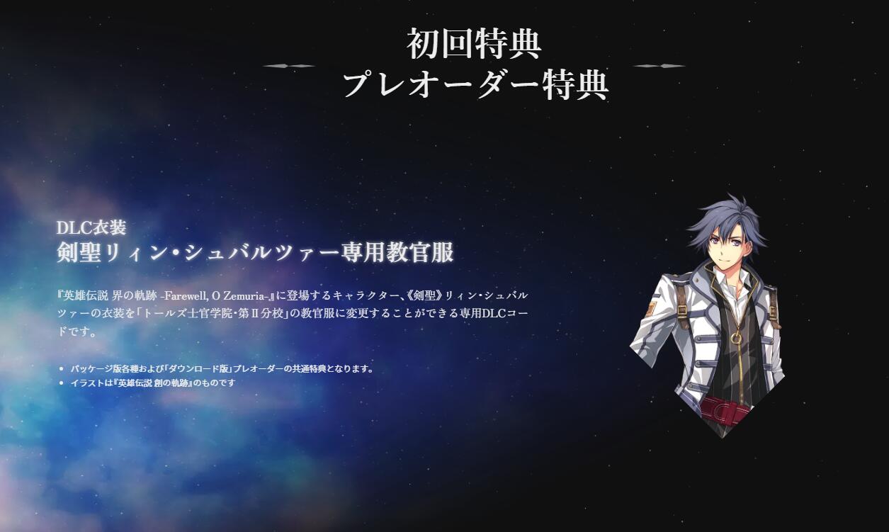 【“桃花剑”“葱头”亮相!《界之轨迹》9月26日正式发售】Falcom今日更新了《英雄传说:界之轨迹Farewell, O Zemuria-》的官网页面,并在宣布游戏发售日的同时放出了本作最新的CM预告。首先官网现已上新了主角团的人物介绍和立绘;其次根据预告视频的内容显示,除了《黎之轨迹》人气角色“静名”会在其中登场外,还出现了许久未见的星杯骑士团第五位守护骑士“凯文”以及帝国桃花剑“黎恩”等人的身影。《界之轨迹》售价8800日元,游戏将于9月26日在PS4/PS5上推出。限定版11550日元,其中附带本体、迷你原声带、20周年纪念卡以及徽章以及BGM等内容。预约可获得首发特典“剑圣黎恩专用教官服”。(点击首图查看最新预告)