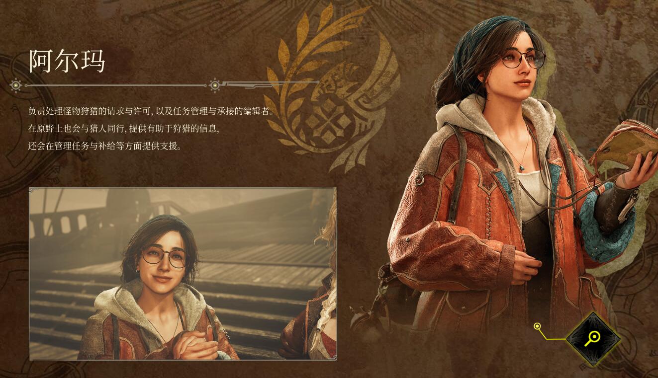 7、阿尔玛:负责处理怪物狩猎的请求与许可,以及任务管理与承接的编辑者。