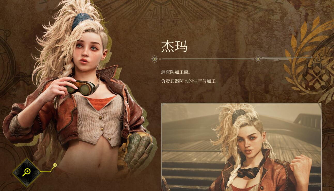 8、杰玛:调查队加工商,负责武器防具的生产与加工。