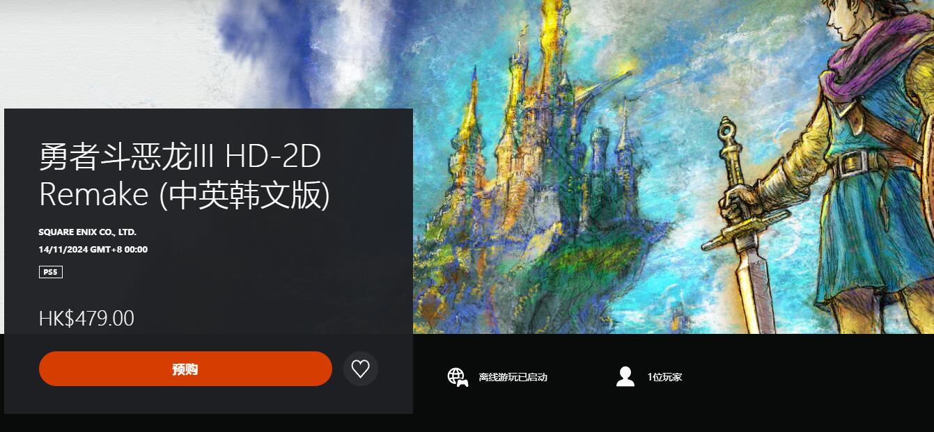 【《勇者斗恶龙3:HD-2D重制版》开启预约,PC配置要求公布】《勇者斗恶龙3:HD-2D重制版》现已开启预约,游戏在PSN HK商店中售价479HKD,Steam国区348元。预约游戏可获得特典“幸福旅行组合”,NS和PS版提供实体版。本作将于11月14日登录NS/PS5/Xbox Series,Steam版15日发售。《勇者斗恶龙1&2:HD-2D重制版》预计2025年推出,两款作品均支持中文。