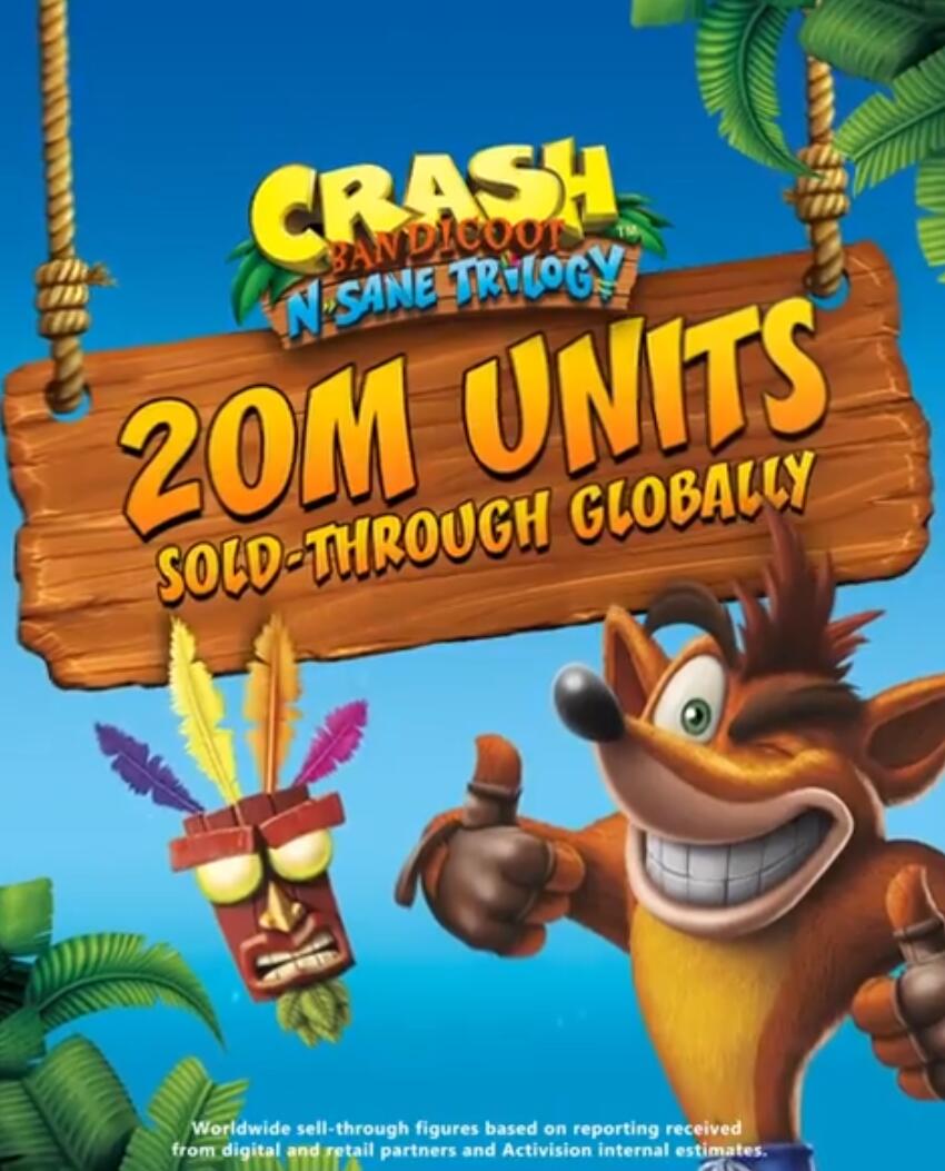 【《古惑狼:疯狂三部曲》销量突破2000万份】动视今日通过《古惑狼》官方社媒宣布,《古惑狼:疯狂三部曲》累计销量现已突破2000万份。本作最初于2017年发售,2019年时官方公布的销量是1000万。《古惑狼:疯狂三部曲》现已在PS4、Xbox One、NS和PC平台上推出。