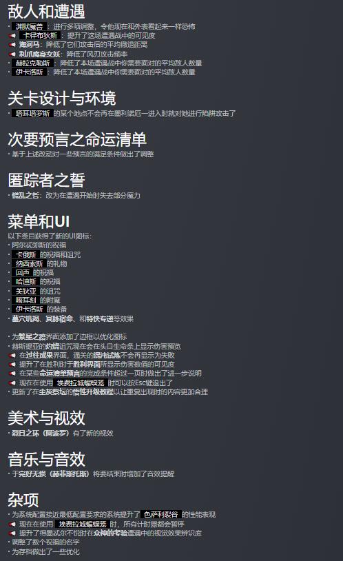 【《黑帝斯2》更新抢先体验3号补丁】Supergiant Games今日为《黑帝斯2》推出了抢先体验3号补丁。此次的更新改进了游戏中大量的祝福,以更进一步提升核心战斗体验和与之相关的选择。此外,补丁还增加了新的UI图标、炼金釜咒语等内容并修复了诸多BUG。官方表示之后会专注于首个大型更新的制作,该内容预计今年晚些时候发布。《黑帝斯2》现已在PC上开启抢先体验,3号补丁完整更新说明可见附图(全部黑条已点开,请酌情查看)。
