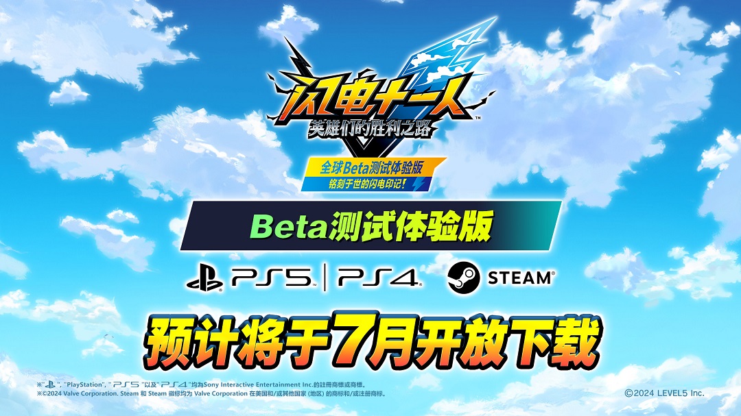 【《闪电十一人》新作将于7月在PS和Steam平台上开测】LEVEL-5近日宣布,《闪电十一人:英雄们的胜利之路》全球Beta测试体验版“铭刻于世的闪电印记”将于7月在PS4/PS5/Steam平台上开放下载。此次除了在画质上有所提升外,故事模式也将增加一小部分新的内容。游戏已于日前在NS上开测(现已结束配信,不过玩家仍可在9月30日22:59前游玩且支持跨平台)。需要注意的是,Beta测试版的数据无法继承至正式版。《闪电十一人:英雄们的胜利之路》将于2024年登录NS/PS4/PS5/Steam/iOS/Android,游戏支持中文。