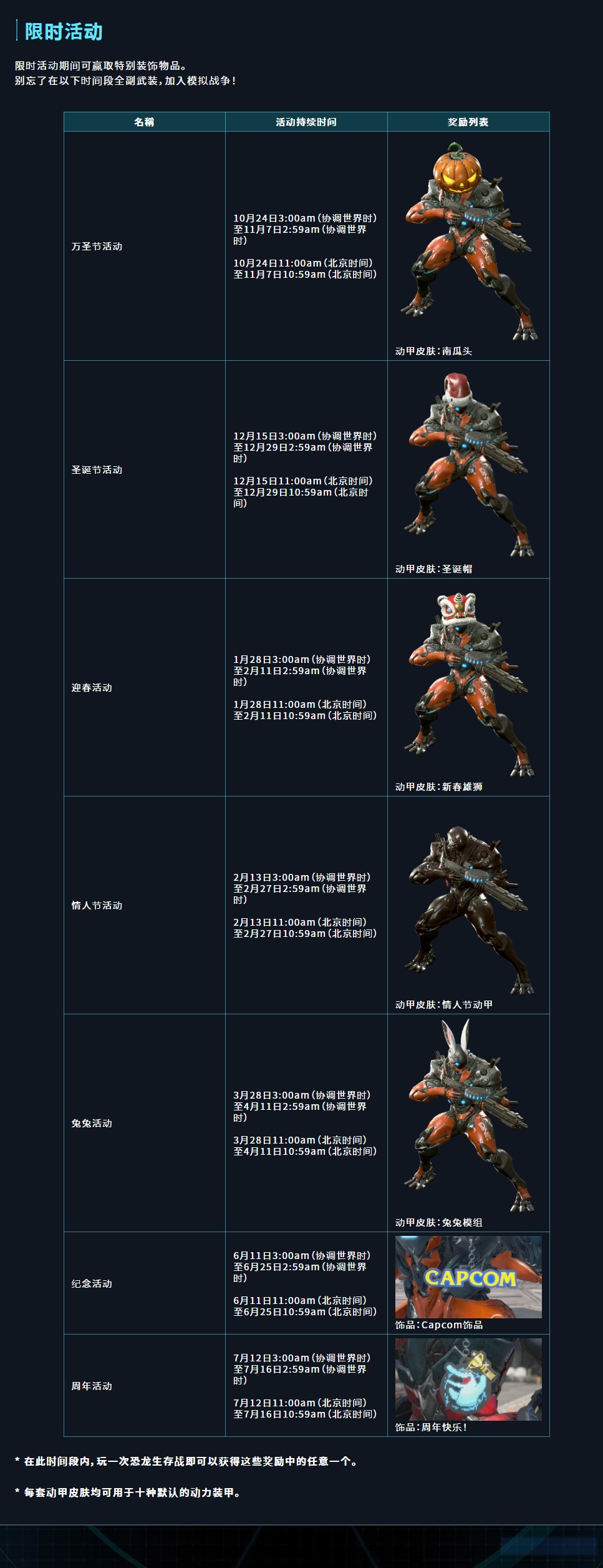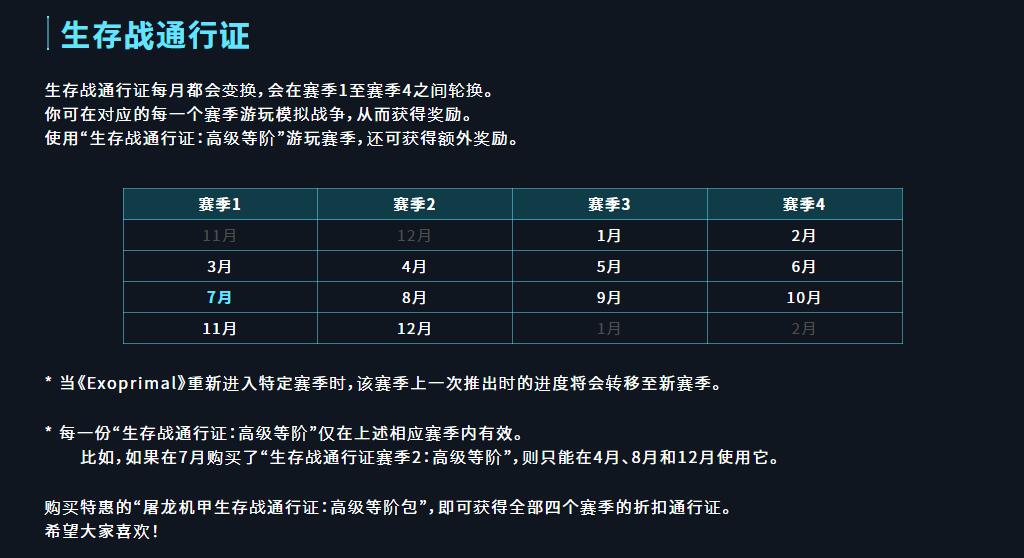 【Capcom宣布《原始袭变》所有计划中的赛季内容均已推出完毕】Capcom今日宣布,《原始袭变》所有计划中的赛季内容均已推出完毕。当赛季4于7月11日结束后,赛季1将会回归。之后每月1日将会开启新一赛季的内容。赛季通行证1-3也将再次发售,这将允许玩家获得所有赛季的物品。游戏所有的在线服务仍可继续使用,所有模式也可继续游玩。包括主要的恐龙生存战模式,以及终局内容,如野蛮挑战和时间循环反抗。若单人游玩或只与少数其他玩家匹配时,游戏会自动添加机器人(由AI控制的动甲战士),进而让玩家充分体验“锤头鲨帮”的剧情,并游玩至结局部分。《原始袭变》是Capcom于去年7月推出的一款第三人称射击游戏,官方在其上市后不到两周时宣布玩家人数超过100万。
