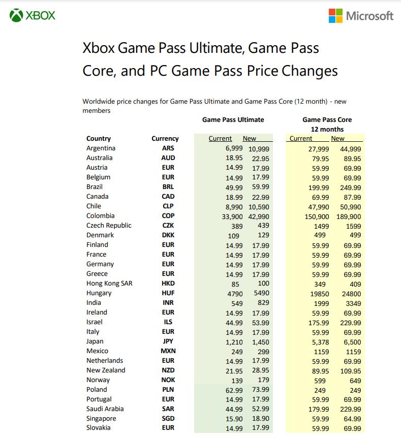 1、Xbox Game Pass Ultimate:价格从每月16.99涨至每月19.99美元。