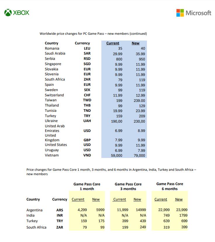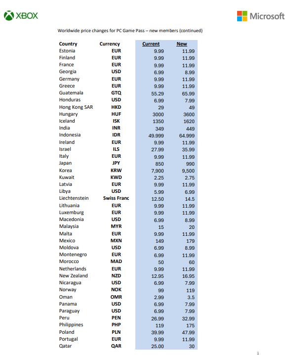 2、PC Game Pass:价格从每月9.99涨至每月11.99美元。