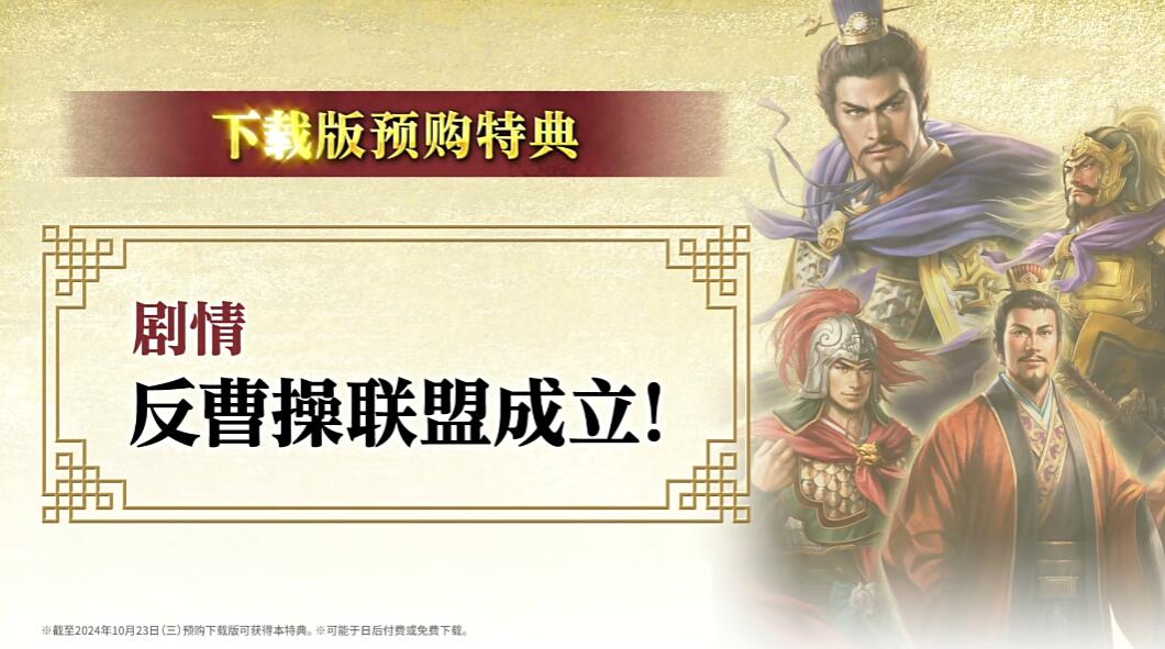 《三国志8:重制版》将于10月24日发售