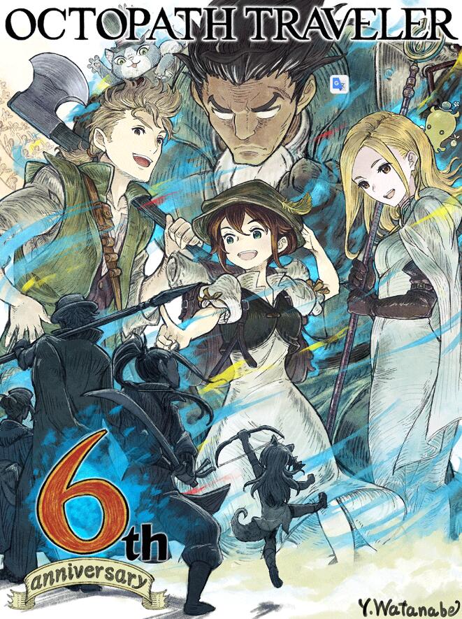 【《八方旅人》6周年贺图公布】《八方旅人》于今日迎来了6周年,为纪念于此,官方发布了一张由渡部义雄所绘制的庆祝贺图。其中除了1代的几人外,下面似乎还有几位续作角色的亮相。官方也在此提醒,于之前的更新中为《八方旅人2》增加了“Extra Battle”模式,里面可以向1代角色发起挑战。《八方旅人》最初于2018年在NS上推出,游戏除了以八位角色视点所开启的物语外,HD-2D技术也从此开始进入了玩家们的视野。目前该系列全球累计销量已突破400万份。