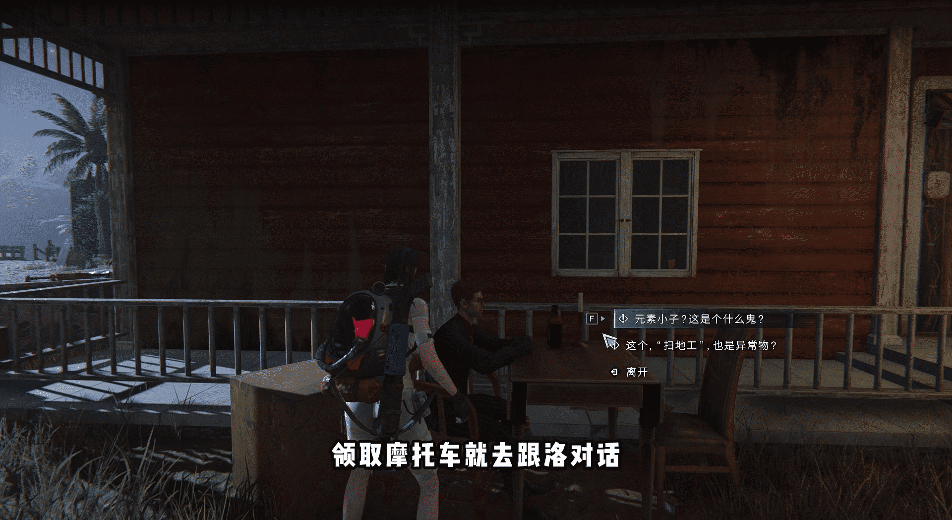 我们来到旅人营地后,领取完摩托车,找到洛对话,接取元素小子和扫地工任务