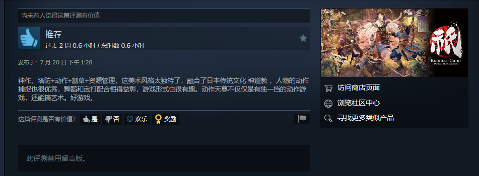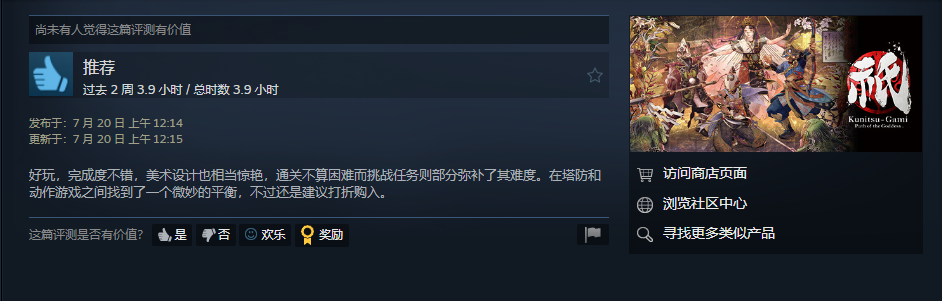 《祇:女神之路》Steam评价特别好评,好评率87%