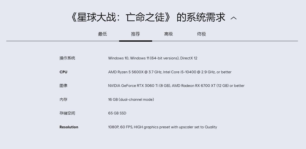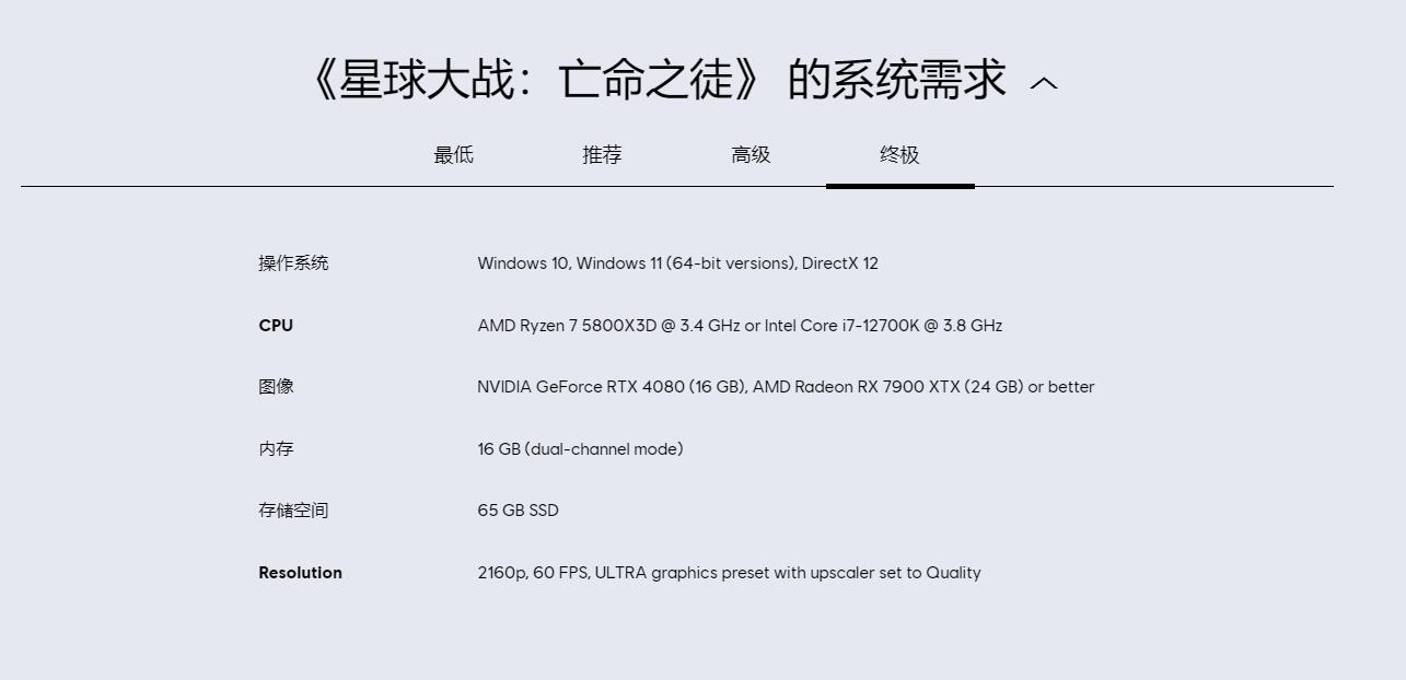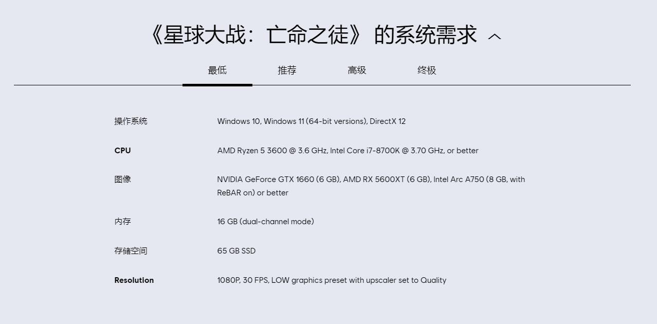 《星球大战:法外狂徒》PC配置要求:最低GTX1660即可畅玩