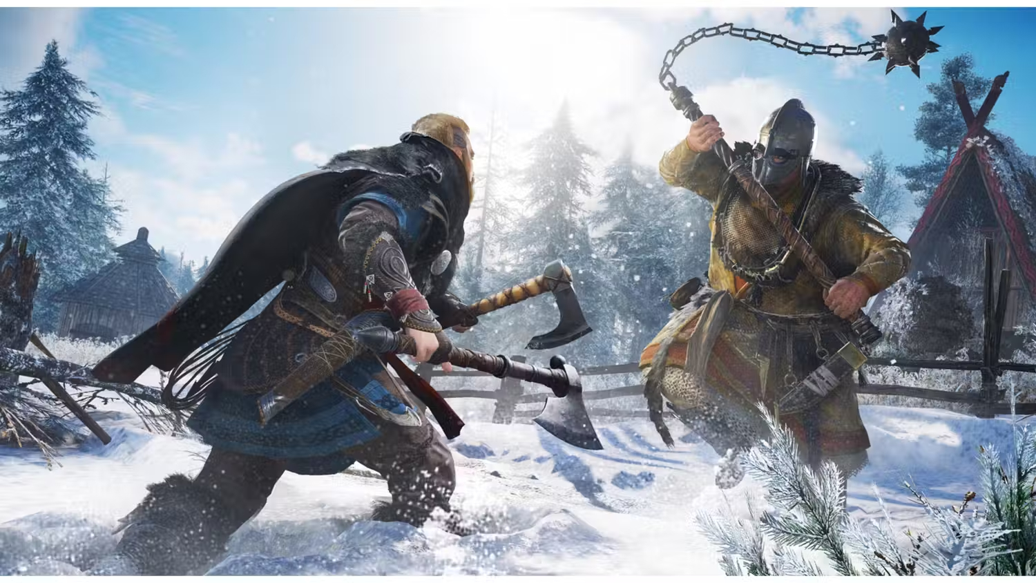 3.《刺客信条:英灵殿》——适合喜欢冷兵器的玩家。链枷、钩斧、长矛···超过百种攻击方式任君挑选。
