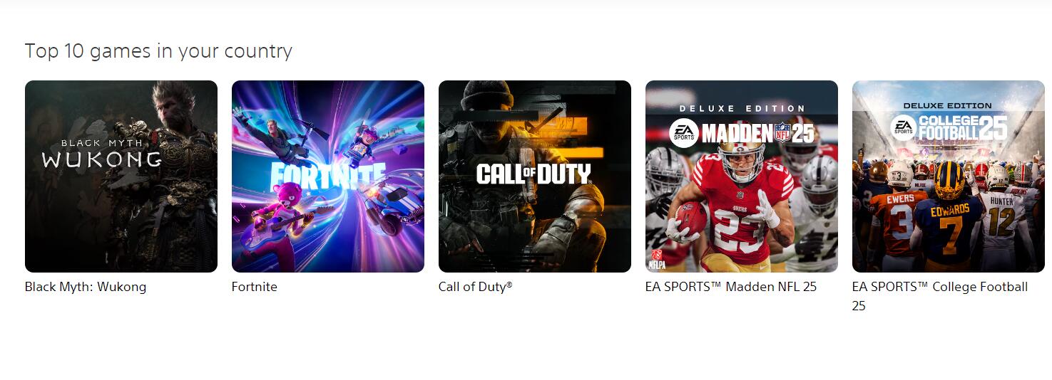 《黑神话:悟空》在PSN商店全球多个地区热游榜中登顶