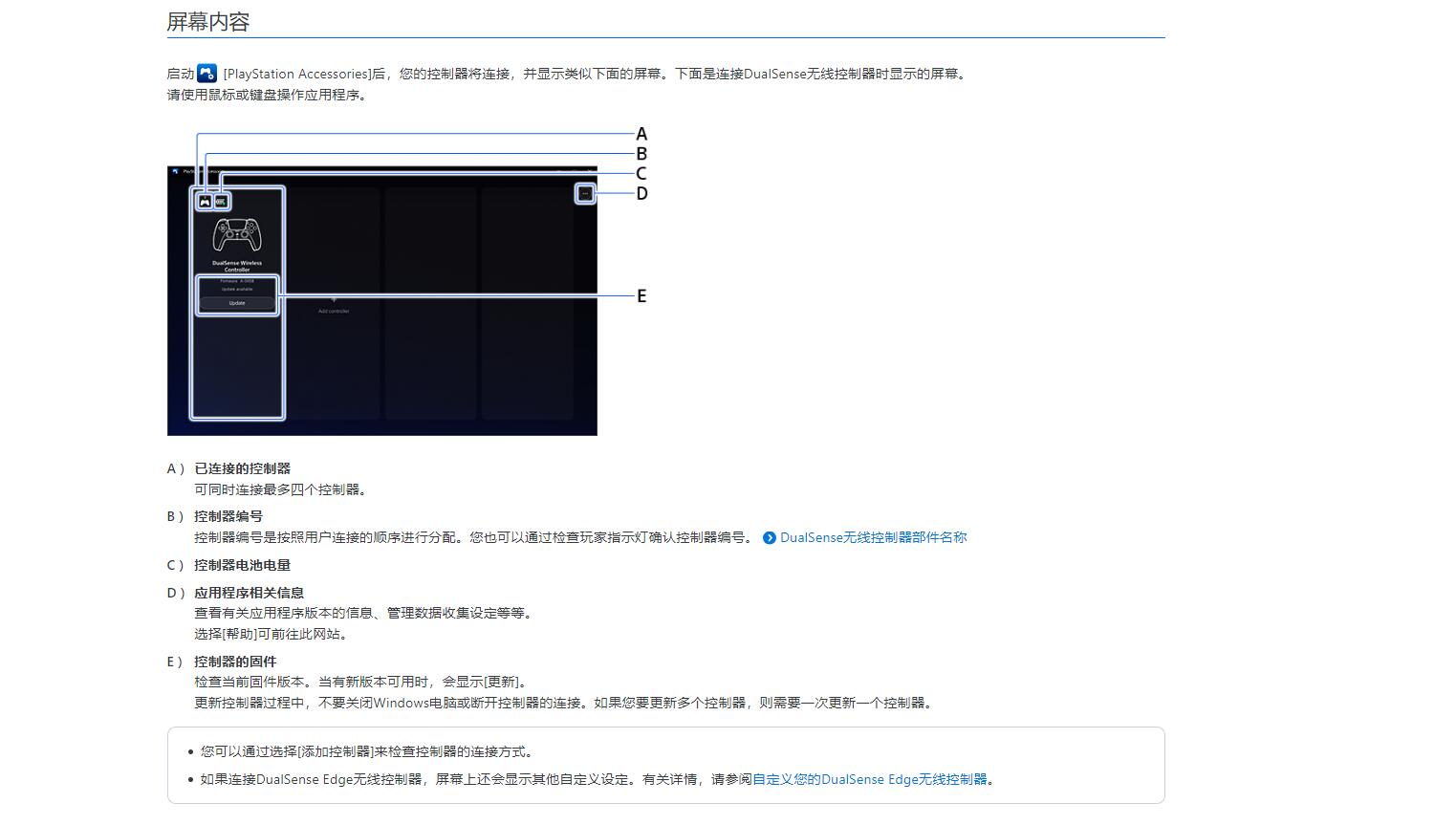 【SIE更新PC端应用程序,玩家可在电脑上自定义精英手柄】SIE为PC端的控制器固件应用程序推出了最新版本2.0.0.13的更新。更新后“DualSense无线控制器的固件更新程序”正式更名为“PlayStation Accessories”。此次更新在整体设计和用户体验方面做出了重大改进,玩家现在可以使用DualSense Edge无线控制器在自己的电脑上创建、编辑和切换自定义配置文件。手柄可使用有线或者无线(可使用市售的蓝牙USB适配器,但并非所有适配器都支持)连接,具体操作和使用的流程详见配图说明。