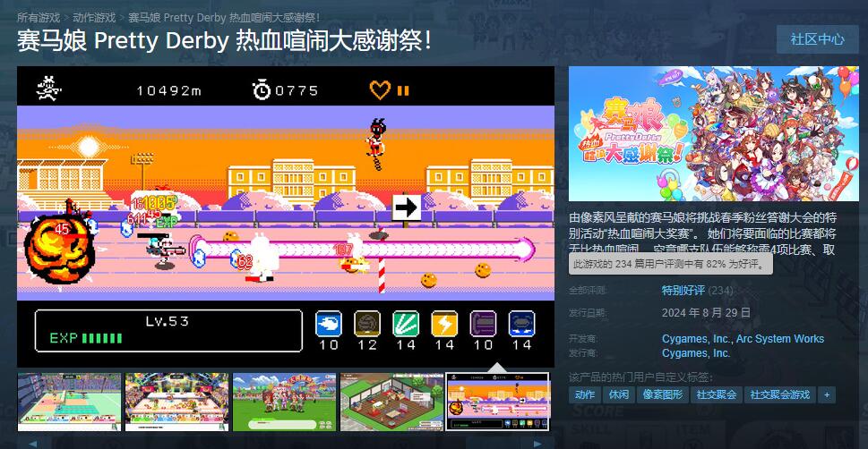 【《赛马娘:热血喧闹大感谢祭》Steam上获特别好评,后续DLC内容公布】由Cygames和Arc System Works所带来的《赛马娘Pretty Derb:热血喧闹大感谢祭》现已正在NS/PS4/Steam上发售。本作中,玩家可在由像素风所呈献的 “热血喧闹大奖赛”里体验赛马娘们以团队形式进行的4项运动比赛。游戏目前在Steam上已有234条评测,玩家好评率82%,整体为“特别好评”。