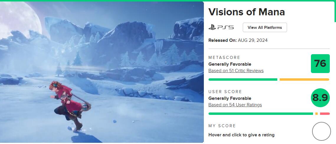 【《圣剑传说》新作MC用户均分8.9,Steam上获玩家“特别好评”】 SE新作《圣剑传说:Visions of Mana》现已在各平台上推出。截至目前,游戏在MC上的用户评分为8.9(暂收录评论54条)。在Steam上的354个评测中,好评率86%,整体为“特别好评”。部分玩家表示游戏在玩法和画风等方面上作的还不错,但是剧情过于薄弱。在PSN商店里,全球玩家评分4.22(共2280条),其中68%的人给出了五星,一星差评占9%。《圣剑传说:Visions of Mana》是系列时隔多年,回归原点的一款王道奇幻RPG。本作由网易樱花工作室协力打造,日前彭博社爆料称该工作室已迎来大规模裁员,并可能在之后被关闭。