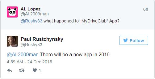 很多玩家对Evolution曾经承诺过的《驾驶俱乐部》手机端APP念念不忘,不过现在大家可以忘记这个名为"MyDrivclub"的应用了。今日《驾驶俱乐部》制作人Paul Rustchynsky在推特上表示,Evolution将在2016年推出一款全新的联动APP。此外Paul Rustchynsky还在回答网友提问时表示,现在整个《驾驶俱乐部》的开发团队共有50个人。《驾驶俱乐部》将在2016年更新加入城市赛道以及多款新车。这款游戏在发售后不断的更新中已经变得越来越棒!