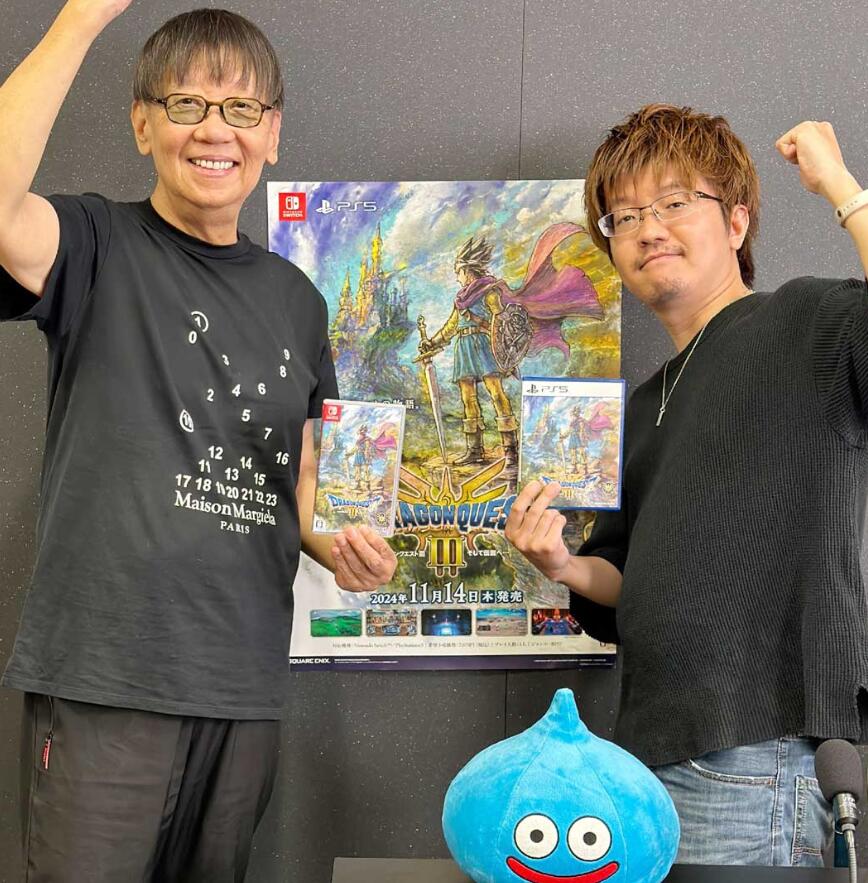 【《勇者斗恶龙3:HD-2D重制版》现已完成开发】勇者斗恶龙官方今日宣布,《勇者斗恶龙3:HD-2D重制版》现已顺利完成开发。游戏将于11月14日,在PS5/NS/Xbox Series/PC平台上如期与玩家们见面。为此,官方还放出了一张“DQ之父” 堀井雄二和制作人早坂将昭的纪念合照。本作是经典RPG《勇者斗恶龙3:传说的起点…》的完全重制版,此次使用了全新的画面表现技术,玩家可在融合了像素与3DCG的HD-2D世界中展开一场盛大的冒险。作为洛特三部曲的其他两款作品(DQ1&2重制版)预计会在2025年推出。