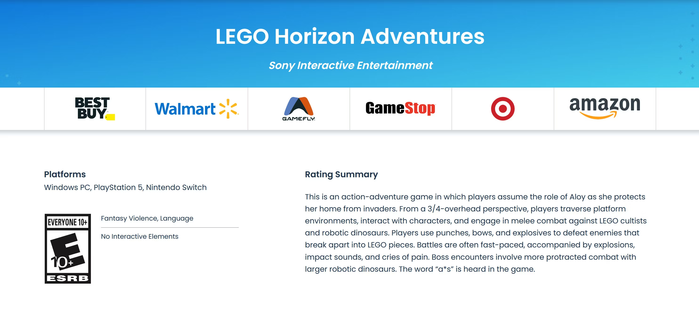 《乐高地平线大冒险》获得ESRB评级,发售日期或并不遥远