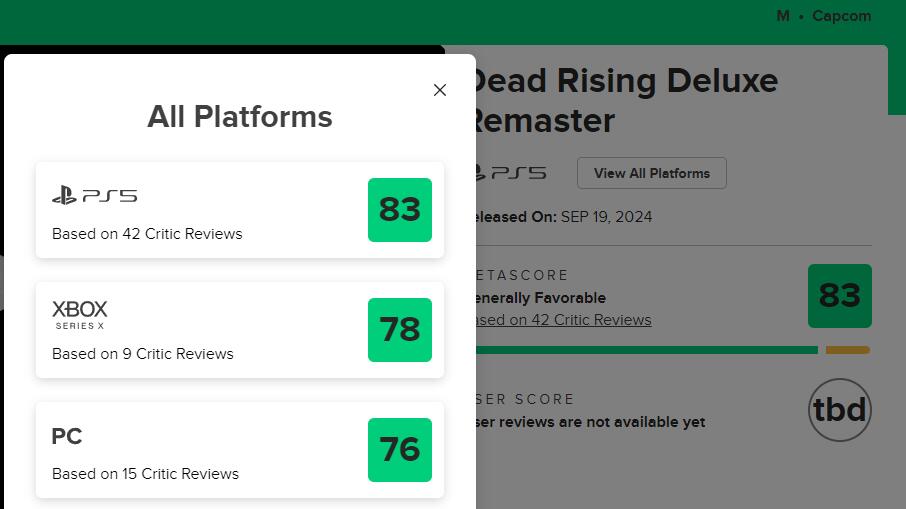 【《丧尸围城:豪华重制版》MC媒体均分83MC媒体均分83】由Capcom所带来的经典复刻游戏《丧尸围城:豪华重制版》全球媒体评测现已解禁。本作目前在MC上PS5版均分83(由43家媒体给出)、Xbox版78分(由9家媒体给出)、PC版76分(由15家媒体给出)。部分媒体的评分及评语概要如下: