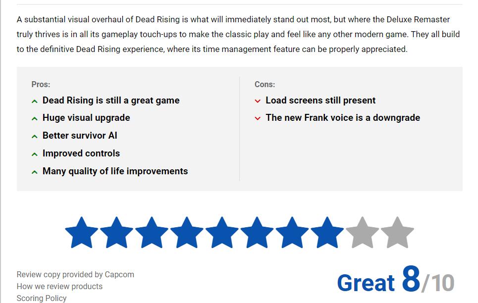 GameSpot(7分):尽管存在一些明显的缺点,但Capcom这款丧尸作品在20年后依旧魅力十足。