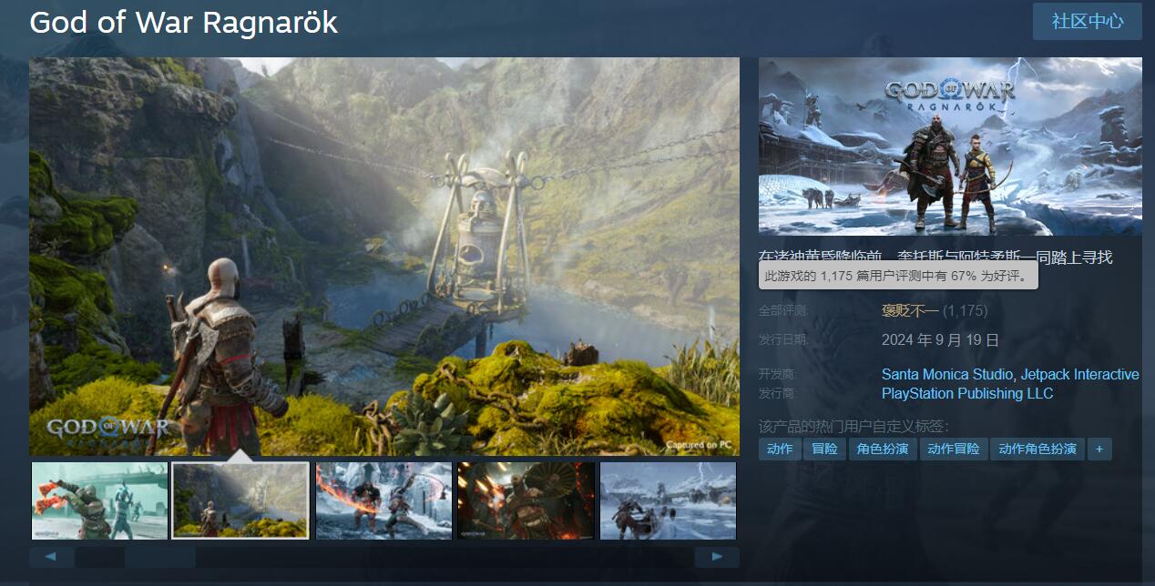 【《战神:诸神黄昏》Steam上获评“褒贬不一”】由PS第一方工作室圣莫尼卡出品、Jetpack Interactive负责移植的《战神:诸神黄昏》现已正式登录PC平台。本作目前在Steam上已有1175条玩家评测,其中好评率为67%,整体“褒贬不一”。其中游戏的差评主要集中在需要PS账号绑定以及优化等问题上。此次PC版有追加“减少解谜提示”“电影音频描述”功能(之后也会添加到主机平台),游戏普通版售价398元。