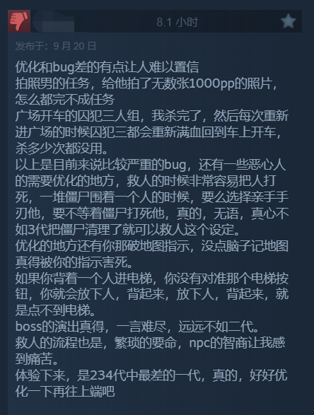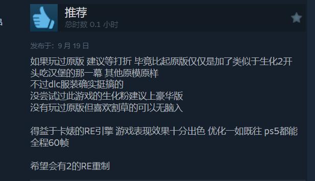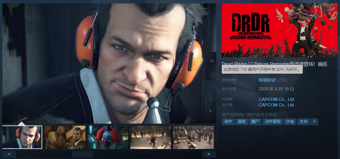 【《丧尸围城:豪华重制版》Steam上获玩家“特别好评”】由Capcom带来的经典丧尸动作游戏复刻作《丧尸围城:豪华重制版》现已在Steam上推出。本作使用RE引擎打造,除了焕然一新的画面外,还追加了自动保存等提升体验的新功能。截至目前,游戏在Steam上已有735条评测,玩家好评率80%,整体为“特别好评”。不少玩家认为游戏整体在还原原作的基础上提供了不少进化后的内容(DLC服装也很搞笑),不过也有一些人认为本作目前在优化和BUG上还存在一些待解决的问题。《丧尸围城:豪华重制版》标准版售价248元,游戏支持中文。