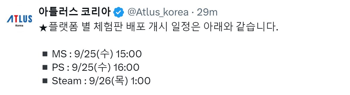 【临时工偷跑?《暗喻幻想》即将上线试玩版】ATLUS韩语官方社媒“不慎”提前公开消息(原文现已删除),即将发售的《暗喻幻想》将在各平台上线试玩版本,具体北京时间如下: