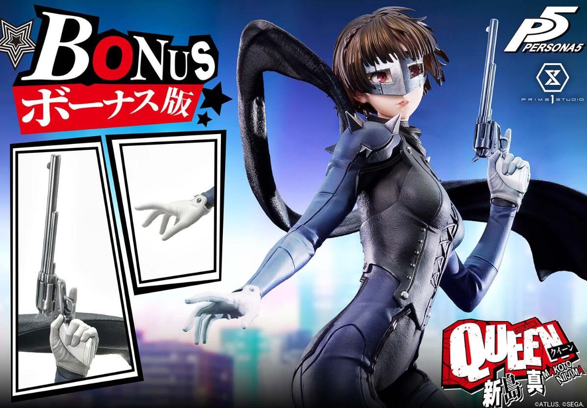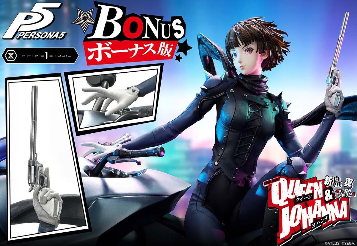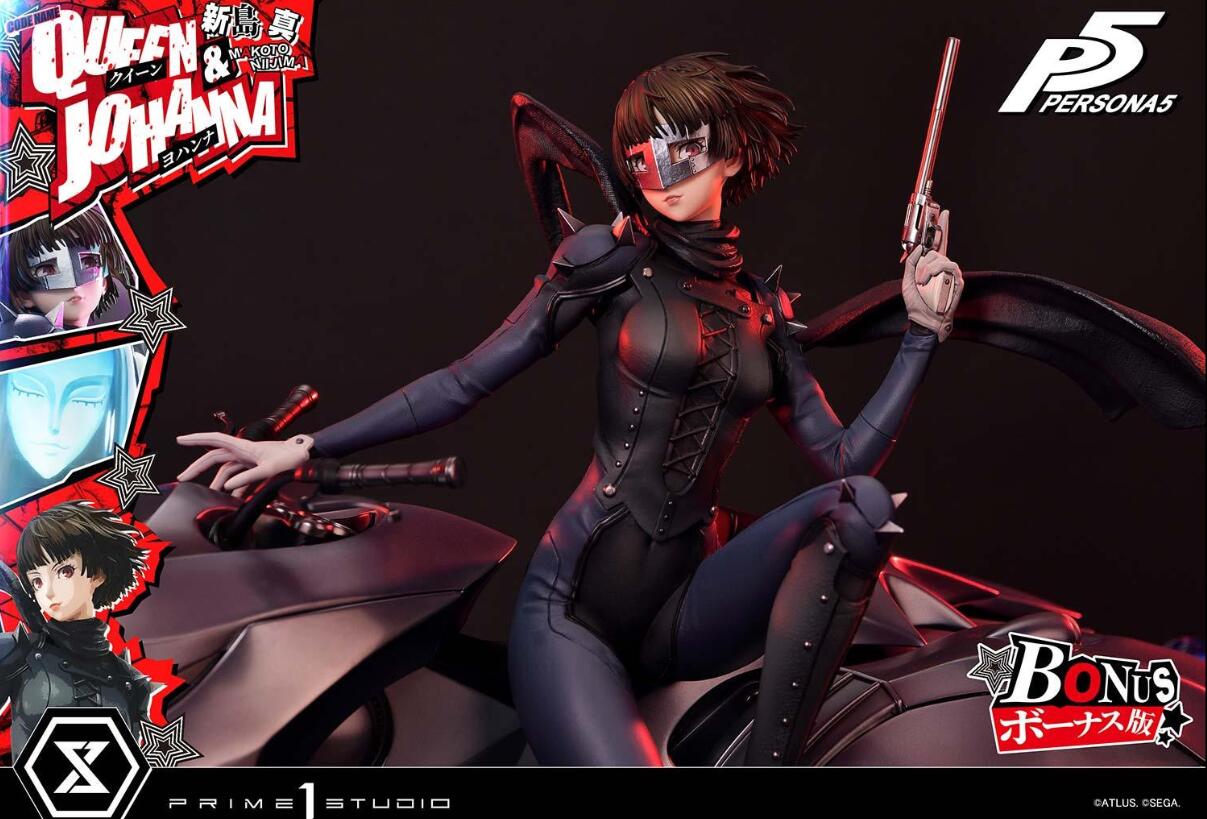 【P1S《女神异闻录5》新岛真&琼安1/4雕像预订中】Prime 1 Studio与Atlus近期公布了《女神异闻录5》人气角色“新岛真&琼安”的1/4雕像。此次产品是行动代号“QUEEN”的学生会长“新岛真”和她的人格面具“琼安”。产品采用了1/4的比例设计,尺寸高约: 42厘米,宽约:70厘米,深约:43厘米。其中附带了头部配件(面具款,常规款)、双臂配件 ×2 (金属指虎,持面具&空手),并且内置LED琼安主题地台。特典版还会额外附带双臂组合(左轮手枪&空手)。该款雕像现已开始接受预约,新岛真单体售价148390日元(约7100元),新岛真&琼安组合售价247390日元(约11800元),预计2026年1~4月出货。