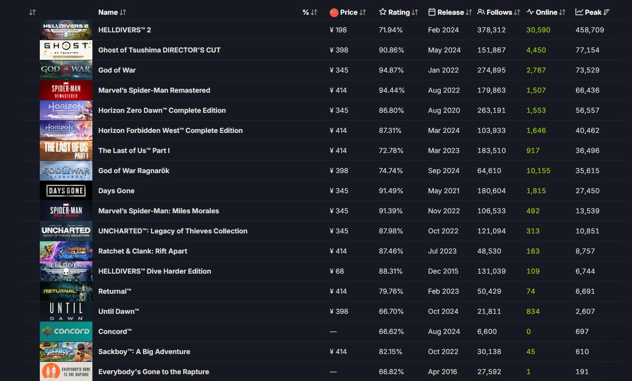 【《直到黎明:强化版》PS上的首发玩家数不如《星鸣特攻》】生存恐怖游戏《直到黎明:强化版》已于日前上市。负责开发的Ballistic Moon此次使用了虚幻5针对PC和PS5进行了重新打造和强化。根据TrueTrophies所提供的数据显示,《直到黎明:强化版》PS5版的首发玩家数比备受玩家诟病的《星鸣特攻》还要少28.6%(注:TrueTrophies的数据来自其所掌握的310万个活跃的PSN账户,作为第三方数据仅供参考)。在Steam平台上,根据SteamDB的数据显示,本作玩家在线人数现在只有800多人。虽然峰值有2607人,但在PS第一方作品中,也仅仅排在697人《星鸣特攻》的前一位。