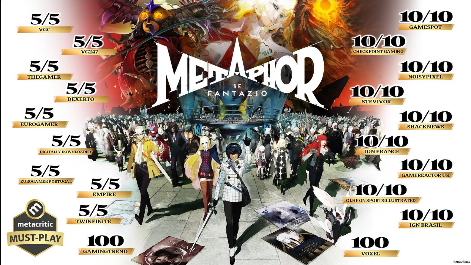 【《暗喻幻想》正式发售,官方纪念贺图和媒体赞誉图公开】《暗喻幻想:ReFantazio》今日正式发售!为庆祝此事,Atlus官方发布了由副岛成记绘制的精美贺图以及游戏的媒体赞誉图。这款备受期待的幻想RPG由《女神异闻录3/4/5》班底倾力打造,是Atlus成立35周年的集大成之作。游戏登陆平台为PS4、PS5、Xbox Series以及PC,不知大家准备好踏上这段王道的奇幻冒险之旅了么(Steam版将在今日中午12点解锁)。