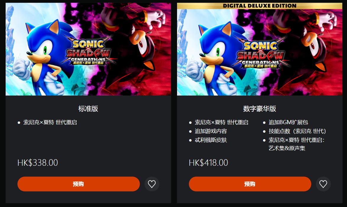 【《索尼克x夏特:世代重启》PS版容量揭晓】据PlayStation Game Size透露,即将到来的《索尼克x夏特:世代重启》PS4版的容量大小为22.447 GB(版本1.01);PS5版则为26.059 GB(版本1.001.000)。本作标准版将于10月23日开启预载,10月25日发售;豪华版拥有提前72小时“抢先游玩”特典,故其会在10月20日开启预载,10月22日即可进入游戏。《索尼克x夏特:世代重启》是在系列经典《索尼克世代》追加新要素的基础上,再加入全新篇章《夏特世代》的高速动作冒险游戏。除了PS版外,游戏也将登录NS、Xbox Series、Xbox One、Steam、Epic平台(PS和NS提供实体版)。